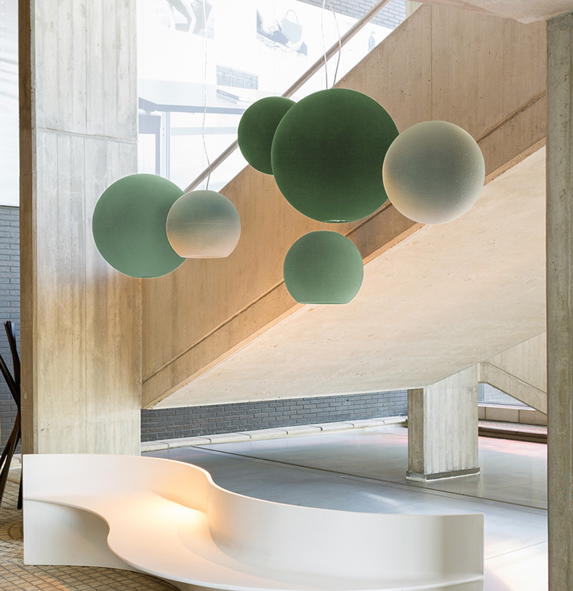 The applicability of these suspended fixtures is universal: high ceiling circulation areas and lounges as well as lower ceiling meeting rooms and private interiors can benefit from this attractive concept in terms of acoustics and atmosphere.